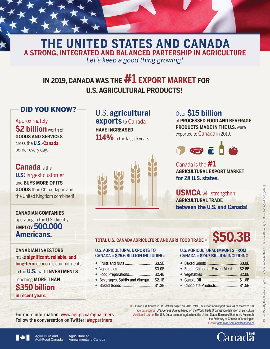 Representing over 200,000 farmers across Canada, the Canadian Federation of Agriculture (CFA), has welcomed the renewal of NAFTA in the from of CUSMA; their statement also addressed concerns over the concessions made by the Canadian federal government for allowing US access to the once monopolized Canadian dairy market. As CFA represents over 200,000 farmers across Canada, agricultural economic contribution has totalled to over $143 billion; therefore, the organization themselves stresses the need for the Canadian federal government to cease future concessions, worrying that further Canadian market access may lead to price fluctuations and disrupt the already stable industry. The concessions were necessary to preserve Canada’s supply management system, as the industry still remains protected by the federal government, the Canadian government has issued compensation for Canadian farmers who will be affected by CUSMA terms.